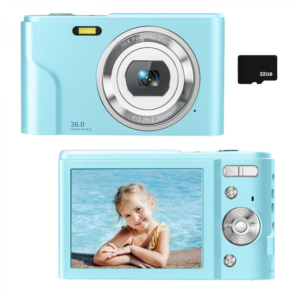 Aparat dziecięcy 48 MP z autofokusem i kartą 32 GB Kamera wideo 1080 P z 16-krotnym zoomem Kompaktowy przenośny aparat kompaktowy Dzieci Boże Narodzenie Prezent urodzinowy Dzieci Nastolatki Dziewczęta Chłopcy (błękit nieba)