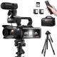 - * Różnorodne Funkcje dla Twojej Nieograniczonej Kreatywności- Ten wielofunkcyjny rejestrator wideo do filmowania, kina i fotografii posiada funkcje wideo i zdjęć w 4K, a także przerywanie, timelapse, zwolnione tempo, ciągłe fotografowanie, samowyzwalacz, wyjście HDMI i inne przydatne funkcje, obsługuje karty SD do 256GB, gorącą stopkę i gniazdo mikrofonu zewnętrznego do podłączenia zewnętrznego światła wypełniającego i statywu. Pojemność baterii wynosi 4500mAh, a w zestawie znaj