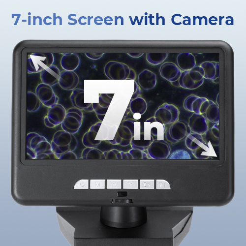- * Duży 7-calowy ekran z 5MP kamerą:nKoniec z mrużeniem oczu przez małe okulary. 7-calowy wyświetlacz pozwala wygodnie obserwować próbki w czasie rzeczywistym, idealny do sesji grupowych, lekcji domowych i demonstracji w klasie. Wbudowana 5MP kamera rejestruje żywe zdjęcia do 24MP i płynne filmy do 2K, dzięki czemu możesz dokumentować każde odkrycie lub tworzyć angażujące materiały edukacyjne.