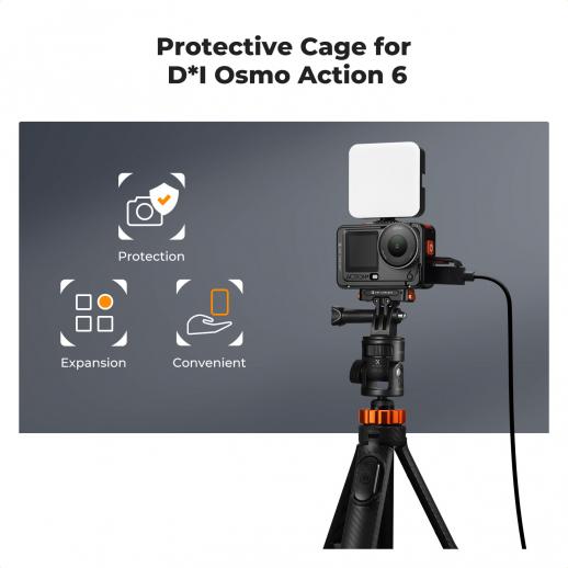 Klatka fotograficzna K&F CONCEPT ze stopu aluminium, kompatybilna z akcesoriami do kamer DJI Osmo Action 6, ochrona obudowy z ramą rozszerzającą i mocowaniem na wagę stopkę | Adapter śrubowy 1/4" do statywu, kija do selfie