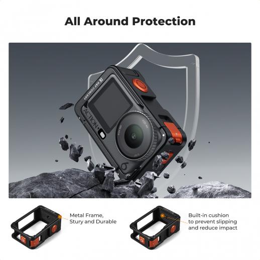 - * [Pełna ochrona]: Wykonanie z bardzo skutecznym stopu aluminium, ta klatka jest lekka i trwała, obejmująca kompleksową ochronę Osmo Action 6. Wewnętrzne podkładki amortyzujące EVA pochłaniają wstrząsy w razie zastosowaniago upadku, a dołączona silikonowa osłona obiektu chronicznego przed zarysowaniami podczas przechowywania.