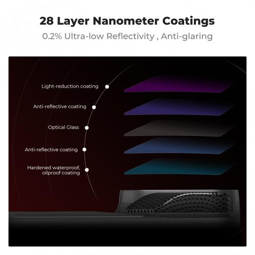 - * Szkło wielowarstwowe: konstrukcja z wysokiej jakości szkła optycznego HD z wieloma warstwami powłok zapewniającymi doskonałą transmisję światła i redukcję odbić