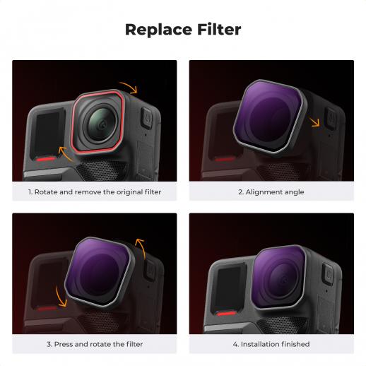 - * Kompletny zestaw filtrów: kompleksowy zestaw 6 filtrów obejmujący filtry PL, ND8, ND16, ND32, ND64, ND128 zaprojektowane specjalnie do kamery Insta360 Ace Pro 2