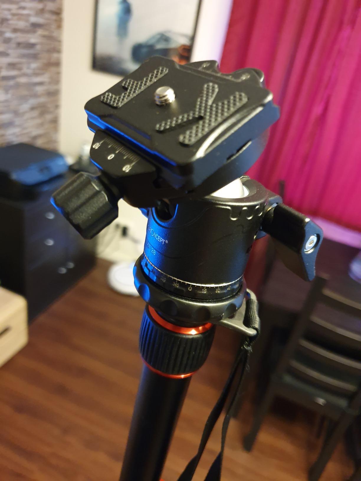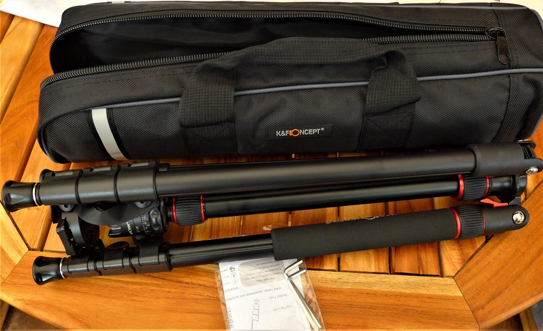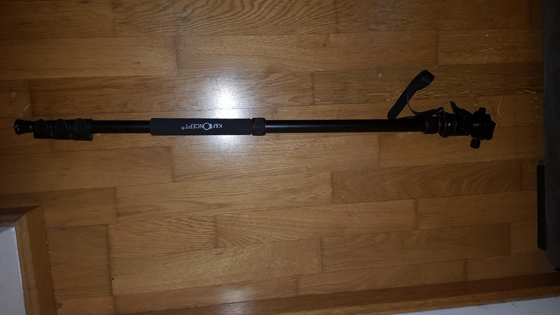 Doskonała jakość i cena Z późniejszym wystąpieniem monopodem, jest wymagane, ma kolce w wykonaniu i przegub kulowy, 3 sekcje plus wspornik drążek, który można umieścić w odwrotnej kolejności do makrofotografieii. Zdjęcia wysokości, które mogą być dostarczane przez monopod, są bardzo wygodne podczas sesji teleobiektywu